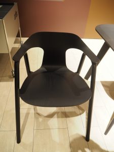 この椅子は、成型合板のシェルと曲木の脚部が融合した、ハイブリッドチェアです。